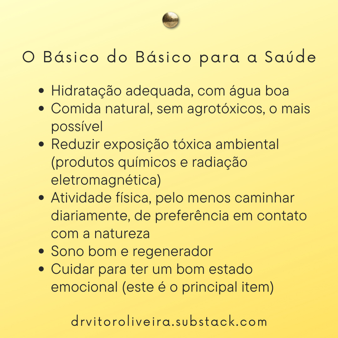 Cada vez mais me convenço de que, se o paciente não fizer o básico do básico para cuidar da saúde, não adianta ir atrás de técnicas, exames, remédios, suplementos ou outros tratamentos mirabolantes e caros.